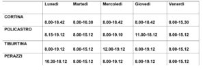 OGGETTO: ORARIO SETTIMANALE APERTURE SEDI TERRITORIO DAL 6 OTTOBRE FINO A NUOVA COMUNICAZIONE